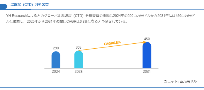 総括すると、温塩深(CTD)分析装置の市場は、2024年の約2.90億米ドル規模から2031年の約4.50億米ドル規模へと成長する見込みであり、2025〜2031年の期間における年平均成長率は約6.8%に相当します。高精度センサ、長期運用性、データ管理・解析機能の強化が今後の市場拡大を支える主要因となる点が示唆されます。