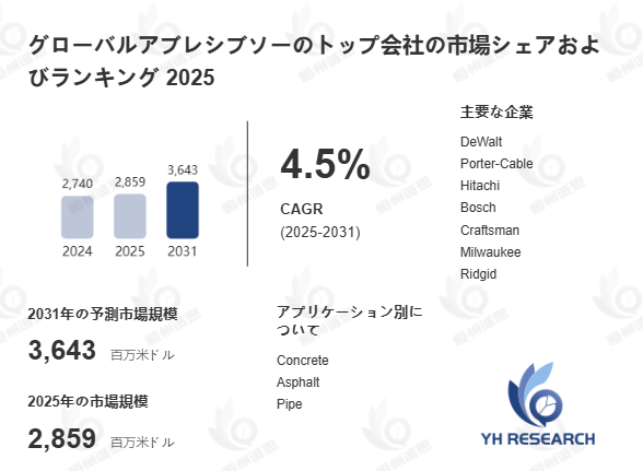本記事は、YH Researchが発行したレポート「グローバルアブレシブソーのトップ会社の市場シェアおよびランキング 2025」 を紹介しています。