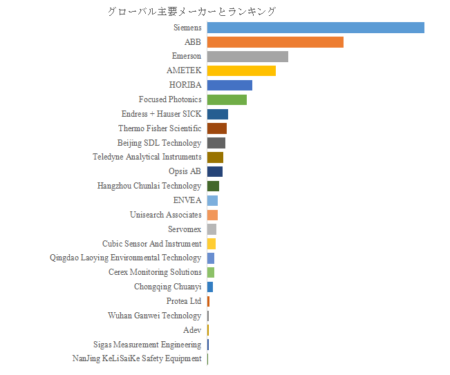 UV ガス分析計の世界的な主要メーカーには、Siemens、ABB、Emerson、AMETEK、HORIBA、Focused Photonics、Thermo Fisher Scientific、Endress+Hauser、SICK、Beijing SDL Technology、Teledyne Analytical Instruments などが含まれている。YH Researchの分析によれば、2024年にはこれらトップ10企業が売上ベースで 約71.0%の市場シェア を占めており、市場の寡占化傾向が明確である。特に Siemens の SIPROCESS UV600 は、NO、NO₂、SO₂、H₂S など最大3成分を同時計測でき、プロセス制御や排出監視の定番装置となっている。