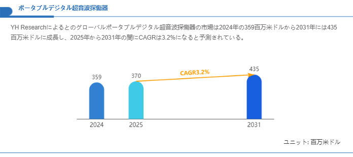 ポータブルデジタル超音波探傷器の市場は、インフラの維持管理ニーズの拡大、製造現場における品質保証強化、ならびに安全規制の厳格化を背景として堅調に推移すると考えられます。市場規模の観点では、基準年となる2024年の市場規模を3億5,900万米ドルと評価した場合、2031年には4億3,500万米ドル程度に達する見込みであり、2025年から2031年の年平均成長率は約3.2%で推移する想定となっています。この数値は、短期的な経済変動に左右される可能性があるものの、中長期的にはインフラ更新や予防保全の重要性の高まりが安定的な需要基盤を支えることを示唆しています。