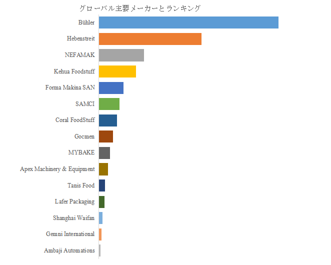 YH Researchトップ企業研究センターによれば、自動ウェハ製造ライン・装置の主要製造企業にはBühler、Hebenstreit、NEFAMAK、Kehua Foodstuff、Forma Makina SAN、SAMCI、Coral FoodStuff、Gocmen、MYBAKE、Apex Machinery & Equipmentなどが名を連ねる。2024年時点で世界トップ5社が売上ベースで約44.0%の市場シェアを占め、技術力・ブランド力が市場集中を支えている。欧州勢は熱制御や品質安定化技術で強みを持ち、トルコ・中国企業はコスト競争力とライン拡張の柔軟性で存在感を高めている。食品メーカーの多様な製品開発要求に応えるカスタマイズ能力が、各社の競争の分岐点となっている。