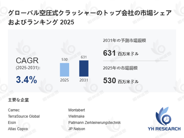上記の図表/データは、YHResearchの最新レポート「グローバル空圧式クラッシャーのトップ会社の市場シェアおよびランキング 2025」から引用されています。