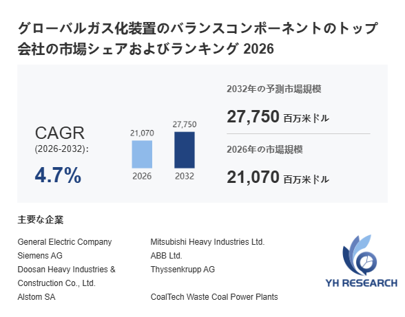 本記事は、YH Researchが発行したレポート「グローバルガス化装置のバランスコンポーネントのトップ会社の市場シェアおよびランキング 2026」 を紹介しています。
