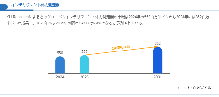 市場規模に関しては、提供された集計値を基にすると、世界市場は基準年の2024年において5億5,000万米ドル程度の規模にあり、2031年には8億5,200万米ドル前後へと拡大する見込みです。これを年率換算すると、予測区間である2025年から2031年の期間での年平均成長率(CAGR)は約6.4%になる計算です。上記の数値は、施設向けの導入ニーズや健康管理ソリューションのデジタル化、及び測定データを活用したサービスモデルの浸透に伴って市場が段階的に拡大するシナリオを反映しています。