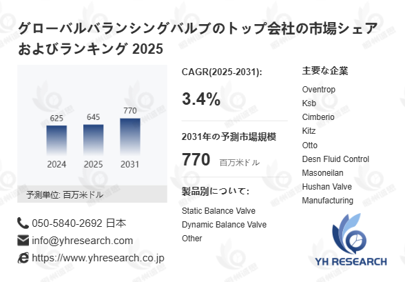 上記の図表/データは、YHResearchの最新レポート「グローバルバランシングバルブのトップ会社の市場シェアおよびランキング 2025」から引用されています。
