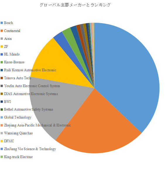 グローバル市場の競争構造を見ると、Bosch、Continental、Aisin、ZF、HL Mando、Knorr-Bremse、Trinova Auto Tech、Ruili Kormee、Youfin Auto Electronic Control System、DIAS Automotive Electronic Systemsといった企業が中核を占める。YH Researchのデータによると、2024年時点で上位10社が全世界売上の約87.0%を占有しており、極めて高い寡占状態にある。欧州勢のBoschとContinentalは技術開発力とOEMとの長期的パートナーシップにより、世界市場を牽引している。日本のAisinはトヨタグループの供給網を背景に、品質と信頼性で強みを持つ。韓国のHL Mando、中国のRuili KormeeやYoufinはコスト優位性とローカルOEMとの関係性を武器に、アジア市場でのプレゼンスを拡大中である。このように、技術・コスト・地域対応力が競争の三本柱となり、企業はブレーキ制御の電子化やデータ連携技術など新分野で差別化を図っている。市場が成熟する中でも、各社は「安全制御の知能化」という次の覇権をめぐり、熾烈な技術競争を続けている。