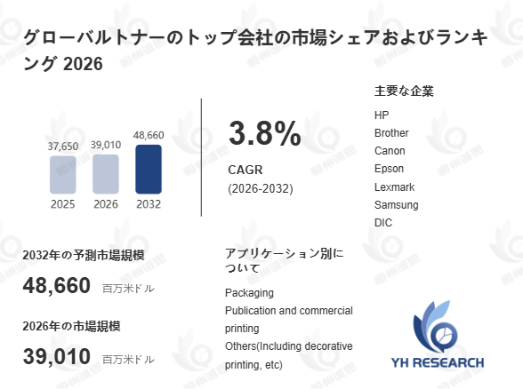 上記の図表/データは、YHResearchの最新レポート「グローバルトナーのトップ会社の市場シェアおよびランキング 2026」から引用されています。