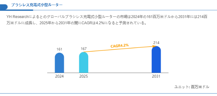2020年~2025年の実績データと、2026年~2031年の将来予測に基づいて、ブラシレス充電式小型ルーター市場の規模、成長率、構造変化を定量的に評価します。中長期的な戦略立案・投資判断の基盤となる分析結果を提供します。