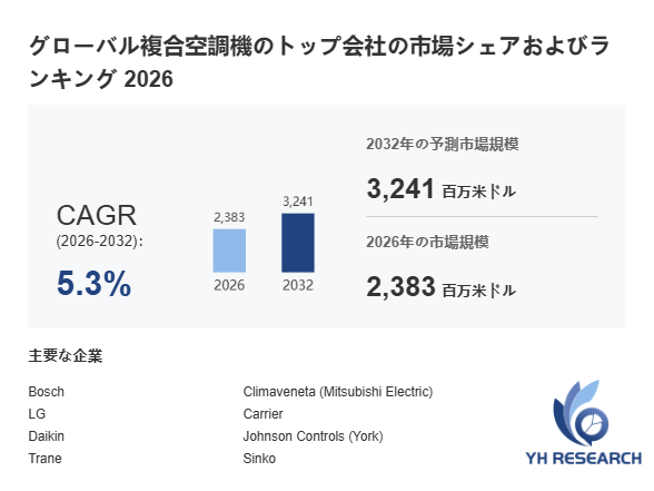 上記の図表/データは、YHResearchの最新レポート「グローバル複合空調機のトップ会社の市場シェアおよびランキング 2026」から引用されています。