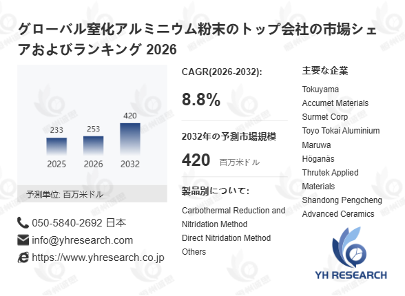 上記の図表/データは、YHResearchの最新レポート「グローバル窒化アルミニウム粉末のトップ会社の市場シェアおよびランキング 2026」から引用されています。
